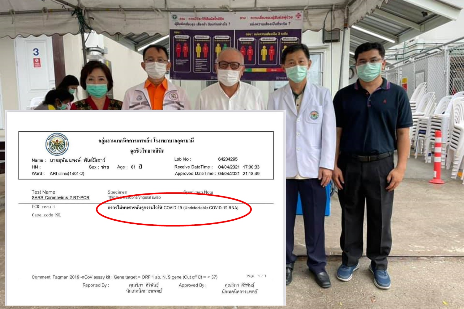 สุพัฒนพงษ์ พันธ์มีเชาว์ รองนายกรัฐมนตรี และรมว.พลังงาน เผยภาพผลตรวจโควิด ยืนยันไม่ติดเชื้อ หลังเข้าตรวจที่โรงพยาบาลอุดรธานี