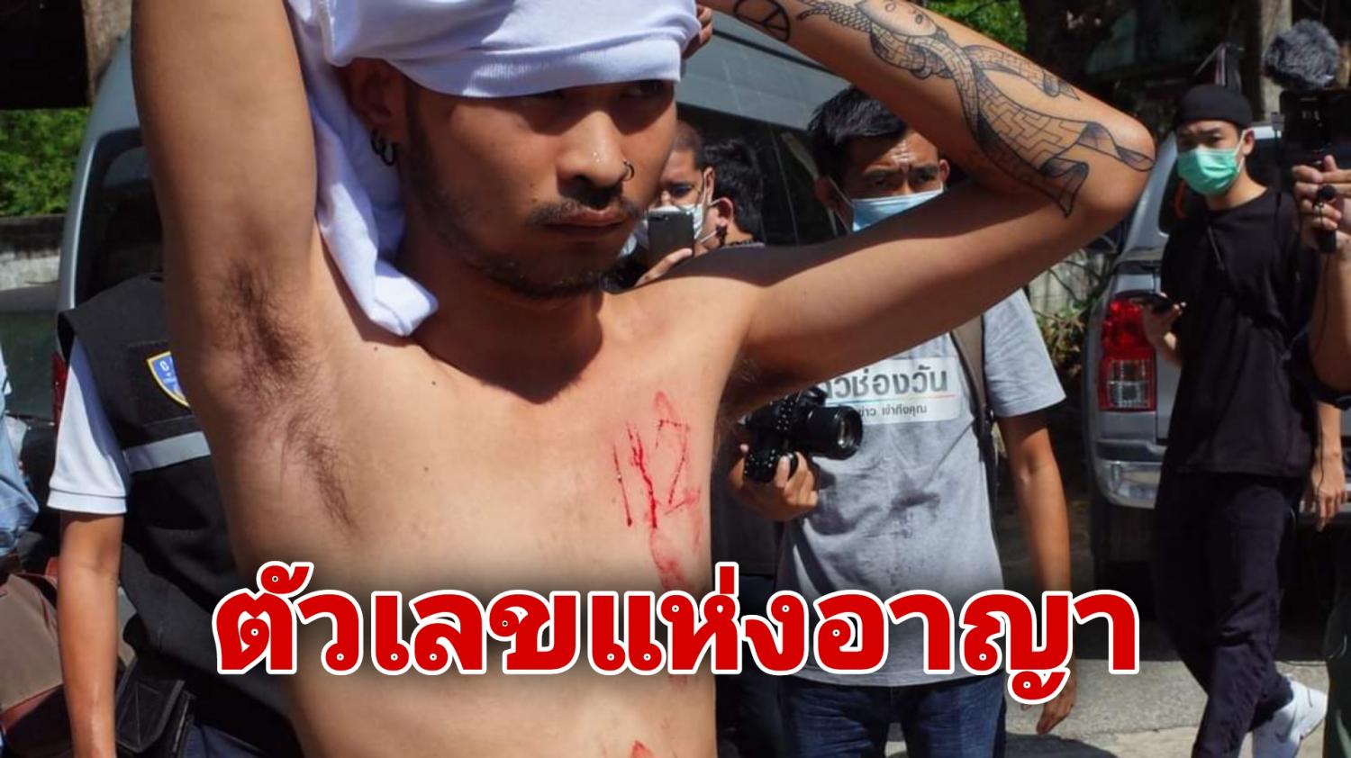 นักศึกษาคณะวิจิตรศิลป์ใช้มีดโกนกรีดหน้าอกเป็นเลข 112 สะท้อนความไม่เป็นธรรม ก่อนรับทราบข้อกล่าวหาปมจัดแสดงนิทรรศการศิลปะ
