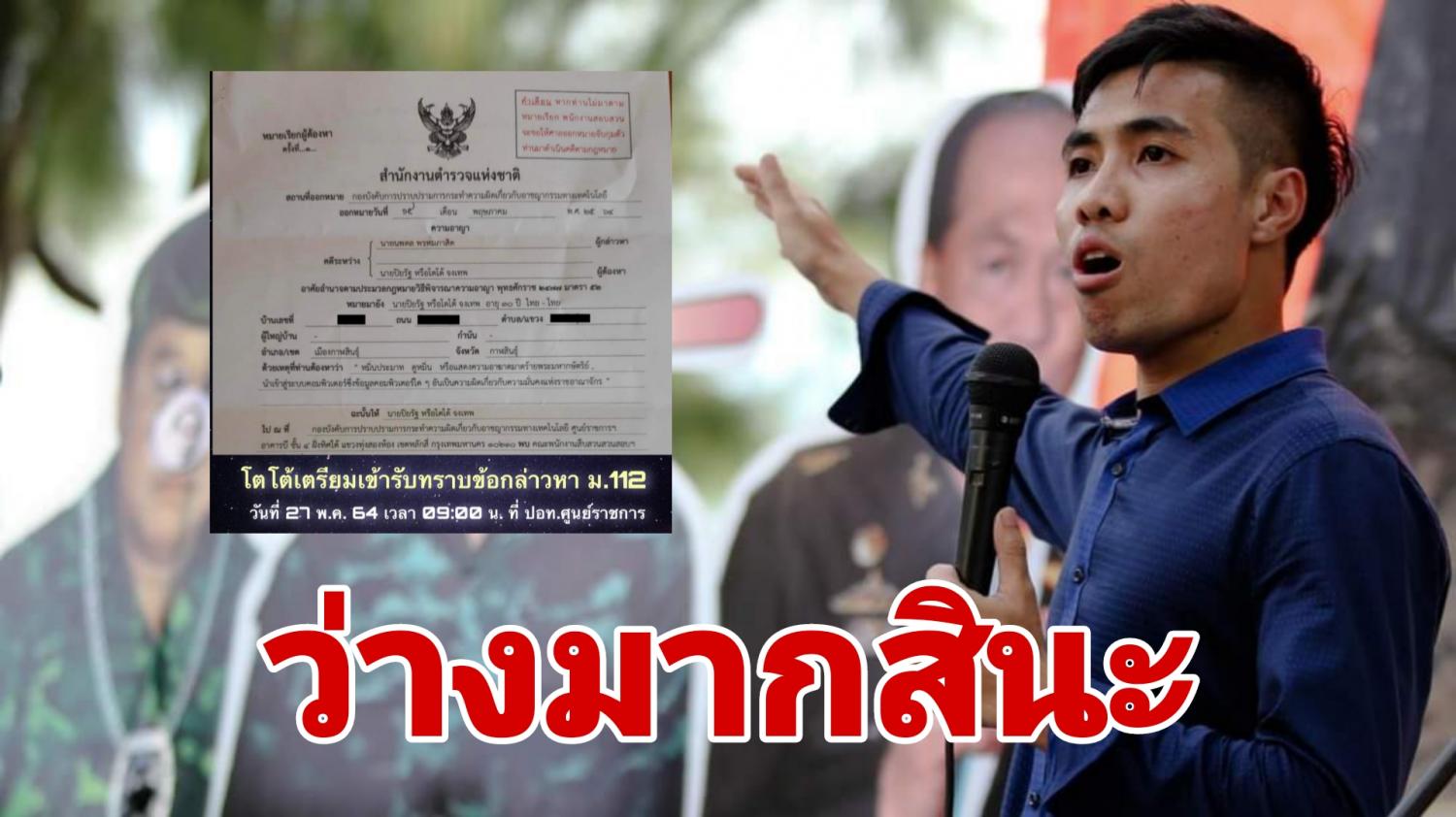 เลยออกหมายเรียกผมไปรับทราบข้อกล่าวหาในวันที่ 27 พ.ค. 64 นี้ เวลา 09:00 น. ที่ ปอท. ศูนย์ราชการแจ้งวัฒนะ