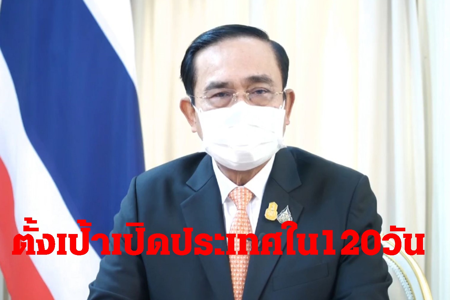 วันนี้ ผมขอแจ้งให้ทุกท่านทราบว่า ผมตั้งเป้าเอาไว้ว่า ประเทศไทยจะต้องเปิดประเทศทั้งประเทศ ให้ได้ภายใน 120 วัน นับจากวันนี้ ส่วนเมืองท่องเที่ยวที่สำคัญๆ หากพร้อมได้เร็วกว่า ก็ควรทยอยเปิดให้ได้เร็วกว่านั้น