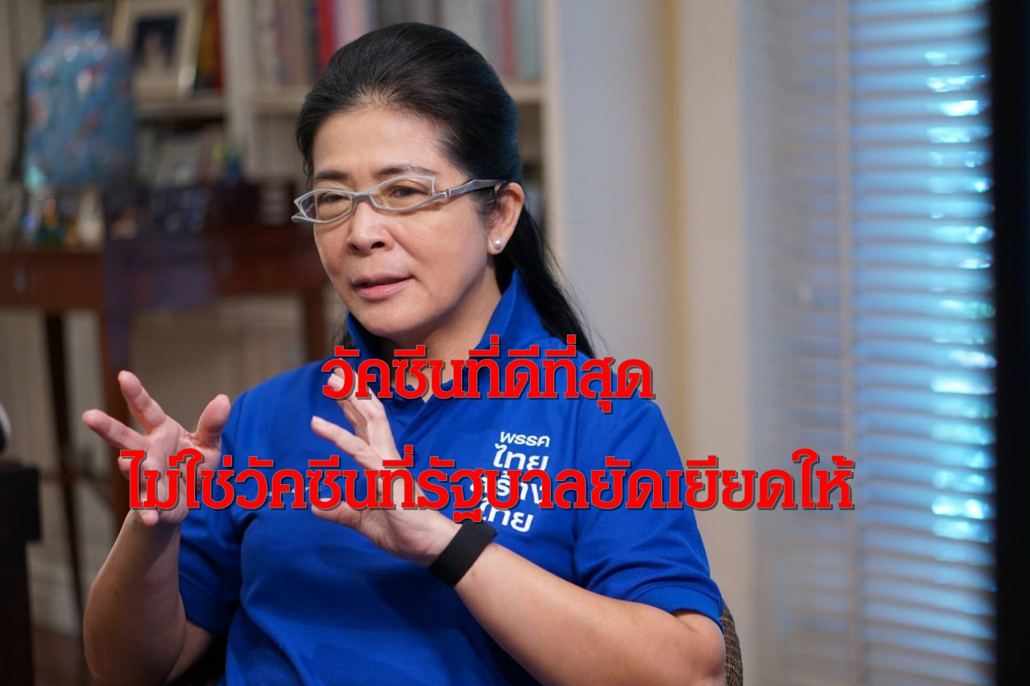 คุณหญิงสุดารัตน์ เกยุราพันธุ์ ประธานพรรคไทยสร้างไทย ได้โพสต์เฟซบุก โดยระบุว่า #วัคซีนที่ดีที่สุดไม่ใช่วัคซีนที่รัฐบาลยัดเยียดให้ชีวิตคนไทยทุกคนมีค่า จะบริหารแบบไม่รับผิดชอบเช่นนี้ไม่ได้