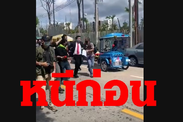 "สิระ"วิ่งเข้ารัฐสภา หลังเป็นตัวแทนจากพรรคร่วมรัฐบาลรับจดหมายร่างรัฐธรรมนูญรื้อระบอบประยุทธ์ มวลชนบางกลุ่มปาขวดน้ำและข้าวของใส่จนต้องหนี