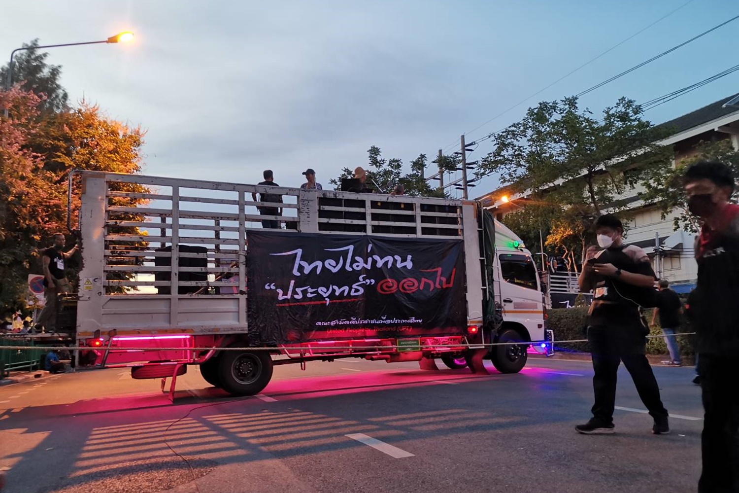 "ไทยไม่ทน"ถึงทำเนียบรัฐบาลตั้งเวทีเตรียมการปราศรัยคืนนี้