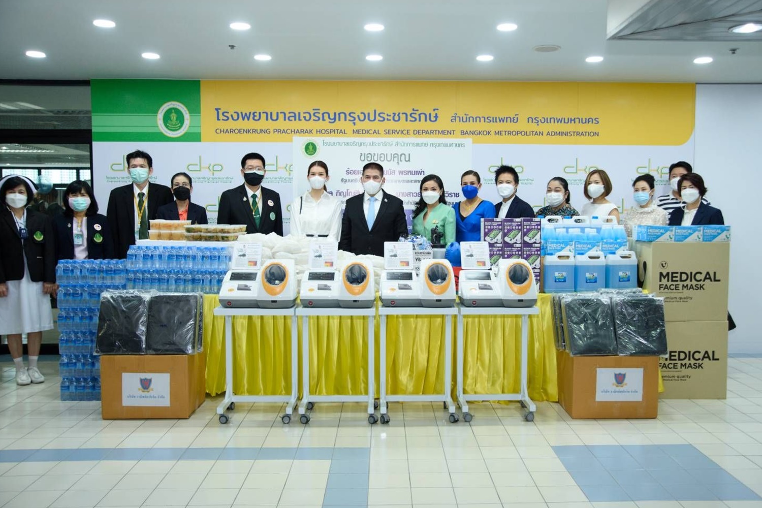 โดยมีนายแพทย์เกรียงไกร ตั้งจิตรมณีศักดา ผู้อำนวยการโรงพยาบาลเจริญกรุงประชารักษ์ เป็นตัวแทนรับมอบ เพื่อสนับสนุนและเป็นกำลังใจให้บุคลากรทางการแพทย์ และเจ้าหน้าที่ผู้เป็นด่านหน้าให้ข้ามผ่านสถานการณ์การแพร่ระบาดของเชื้อไวรัลโควิด - 19 ครั้งนี้ไปด้วยกัน