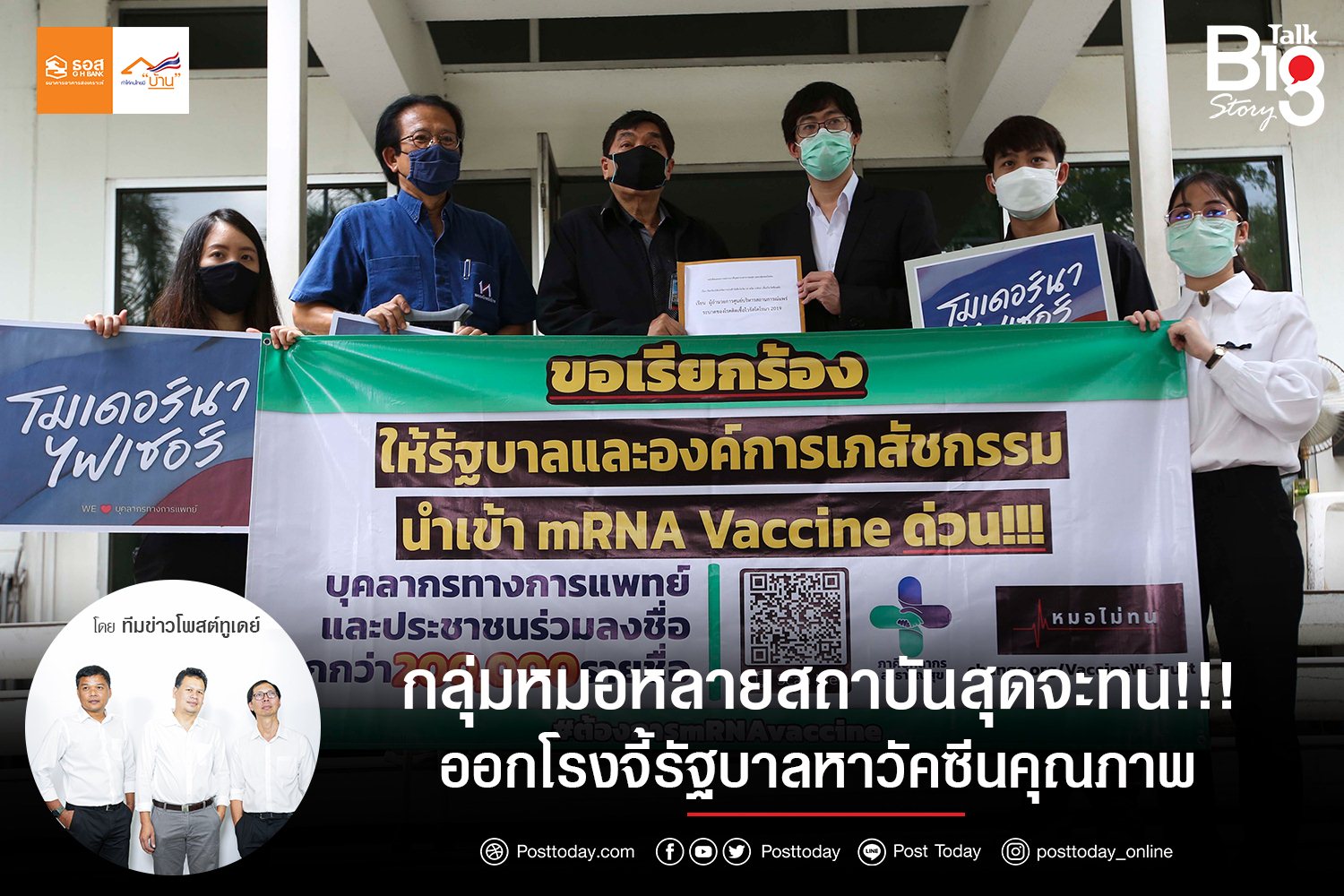 กลุ่มหมอหลายสถาบันสุดจะทน!!! ออกโรงจี้รัฐบาลหาวัคซีนคุณภาพ