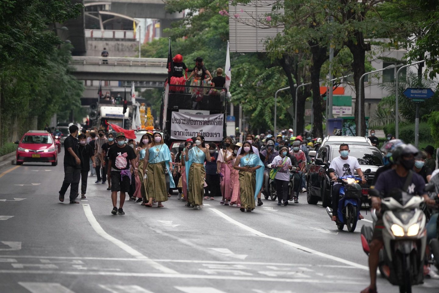 กลุ่มทะลุฟ้าจัดกิจกรรม "แห่เทียน ขับไล่เสนียดจัญไร" เดินขบวนจากอนุสาวรีย์ชัยฯไปยังทำเนียบฯรัฐบาล ด้านเจ้าหน้าที่ตำรวจตั้งแนวสกัดบริเวณแยกนางเลิ้ง