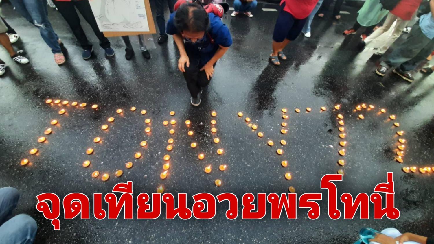 คนเสื้อแดงร่วมจุดเทียนอวยพร"โทนี่"ท่ามกลางสายฝนวอนกลับมาเร็ววัน