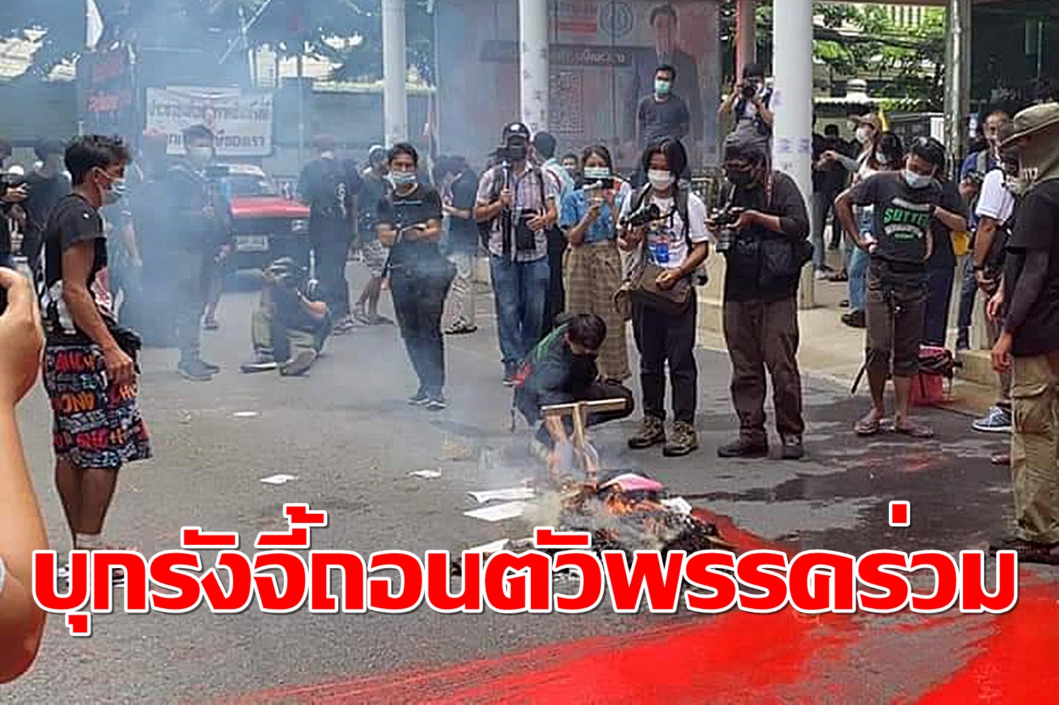 จากนั้นกลุ่มทะลุฟ้าทำการเผาหุ่น พล.อ.ประยุทธ์ จันทร์โอชา พร้อมแถลงการณ์ถึงพรรคประชาธิปัตย์ ซึ่งเป็นข้อความเดียวกับที่แถลงการณ์ถึง ภท.