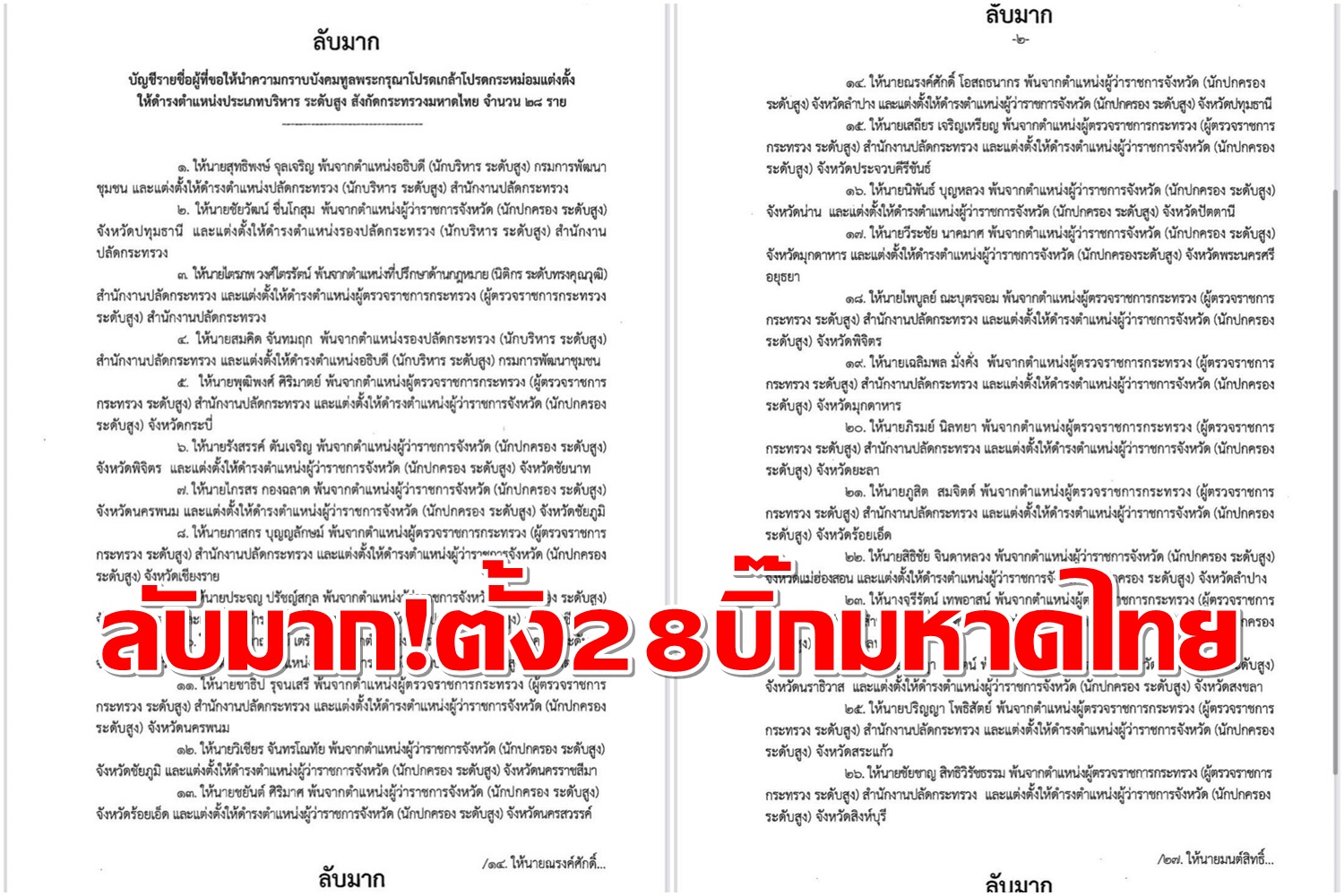 เปิดเอกสารลับมากมท.เสนอครม.ตั้งข้าราชการระดับสูง 28 ตำแหน่ง