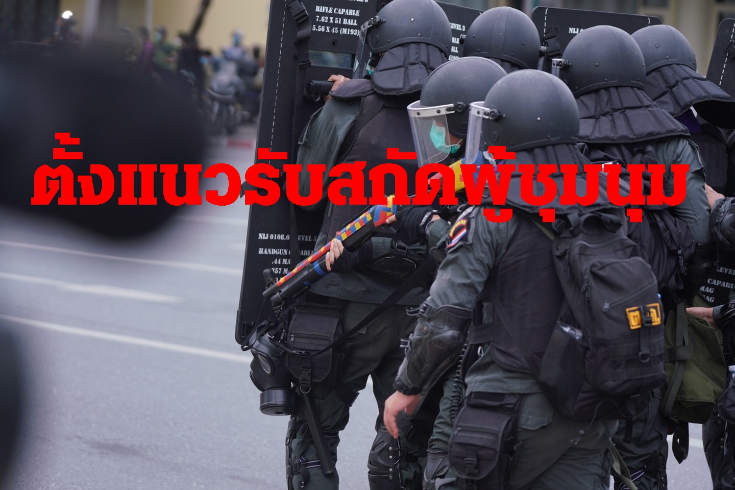 ตำรวจตั้งแถวปรับแนวสกัดผู้ชุมนุมเคลื่อนขบวนไปทำเนียบรัฐบาลแทนหลังเปลี่ยนแผนไม่ไปพระบรมมหาราชวัง ตั้งตู้คอนเทนเนอร์ปิดแยกจปร.