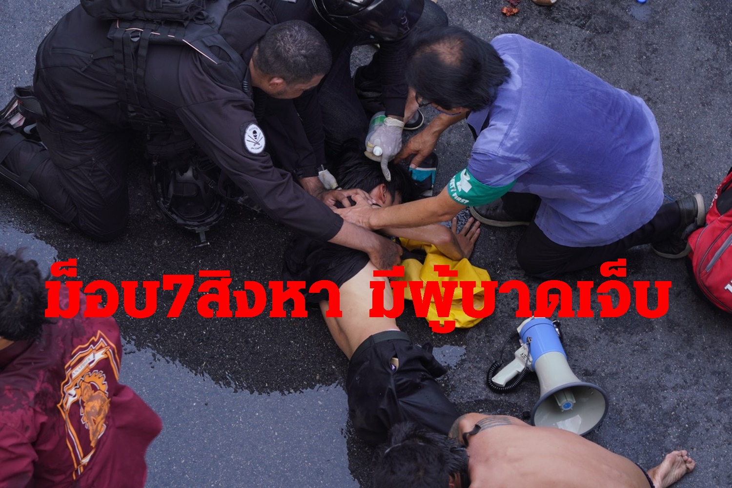 ประมวลภาพผู้บาดเจ็บจากเหตุการณ์ม็อบ7สิงหาที่แยกดินแดง ถูกเจ้าหน้าที่ตำรวจระดมยิงแก๊สน้ำตาและกระสุนยางใส่ ระหว่างเคลื่อนขบวนจากอนุสาวรีย์ชัยสมรภูมิไปบ้านพักหลวงของ พล.อ.ประยุทธ์ จันทร์โอชา นายกรัฐมนตรี และรัฐมนตรีว่ากากรระทรวงกลาโหม ภายในกรมทหารราบที่ 1 มหาดเล็กราชวัลลภรักษาพระองค์