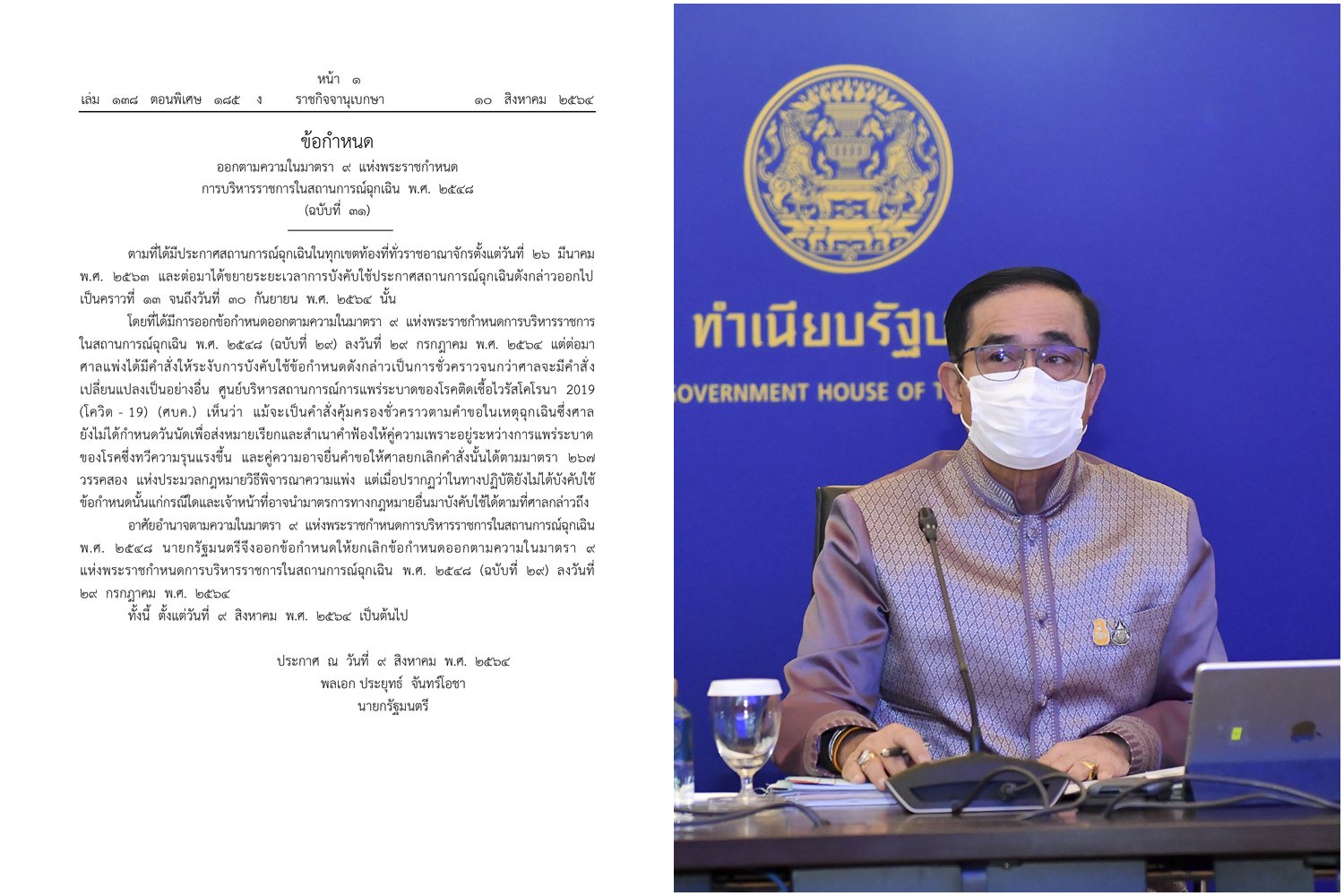 เมื่อวันที่ 10 ส.ค. 64 ราชกิจจานุเบกษาเผยแพร่ ข้อกำหนดออกตามความในมาตรา 9 แห่งพระราชกำหนดการบริหารราชการในสถานการณ์ฉุกเฉิน พ.ศ. 2548 (ฉบับที่ 31 ) ซึ่งลงนามโดย พล.อ.ประยุทธ์ จันทร์โอชา นายกรัฐมนตรี โดยมีรายละเอียดระบุว่า