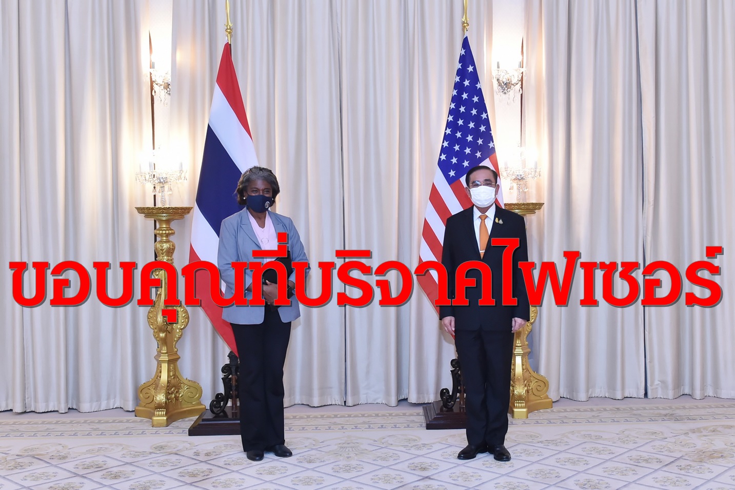 นายกฯหารือเอกอัครราชทูตผู้แทนถาวรสหรัฐขอบคุณช่วยบริจาควัคซีนไฟเซอร์1.5ล้านโดสและจะมอบเพิ่มเติมอีก 1 ล้านโดสในเร็วๆ นี้ พร้อมยืนยันความร่วมมือระหว่างกันในภูมิภาค
