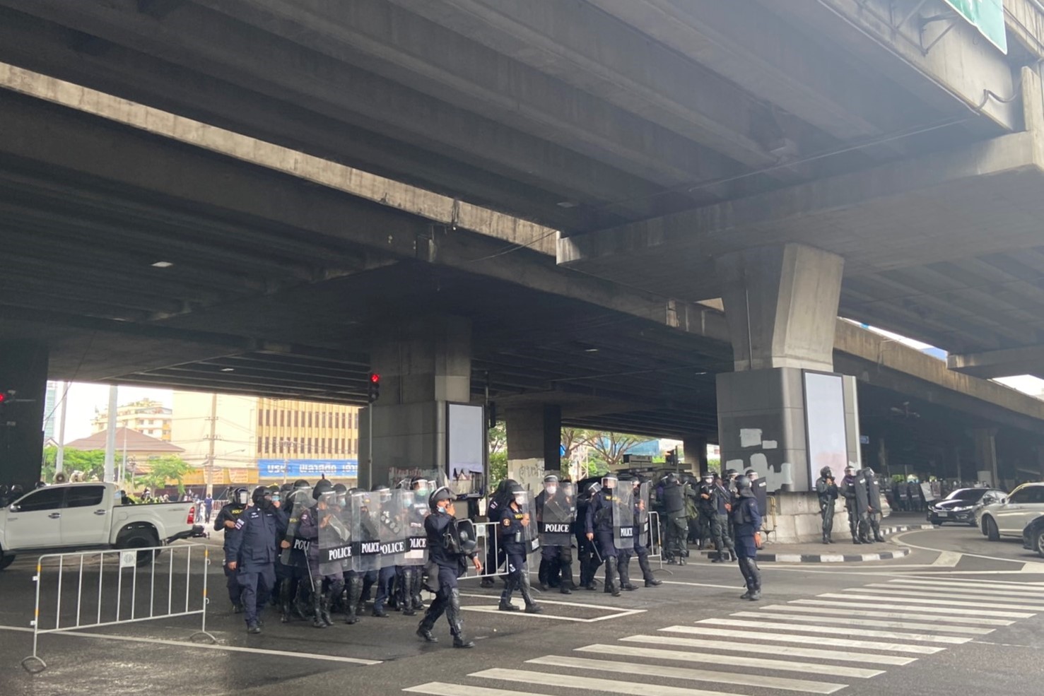 ตำรวจอคฝ.เคลื่อนกำลังเข้าสลายกลุ่มแว้นซิ่งรวมตัวปาประทัดยักษ์และก้อนหินใส่ตู้คอนเทนเนอร์ ก่อนหนีแตกกระเจิง
