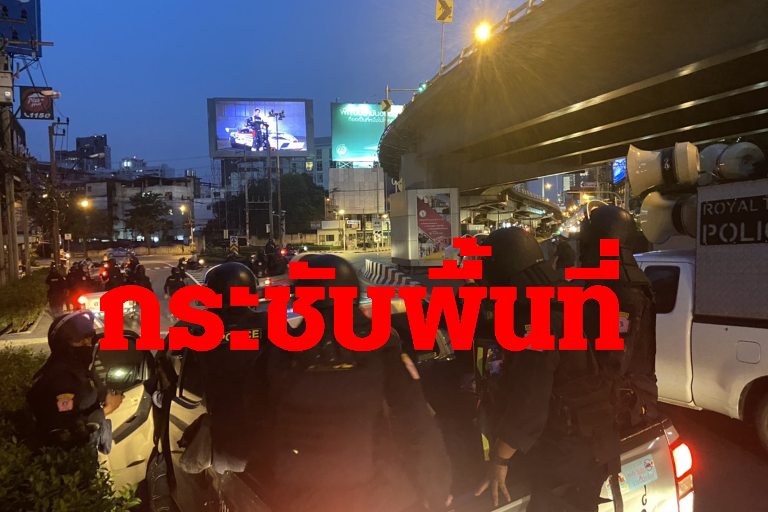 ตำรวจกระชับพื้นที่ดินแดง กลุ่มแว้นซิ่งถอยไปปักหลัก แยกราชปรารภ ก่อนที่ตำรวจ คฝ.จะตั้งแถวและไล่จับกุม-ผลักดัน