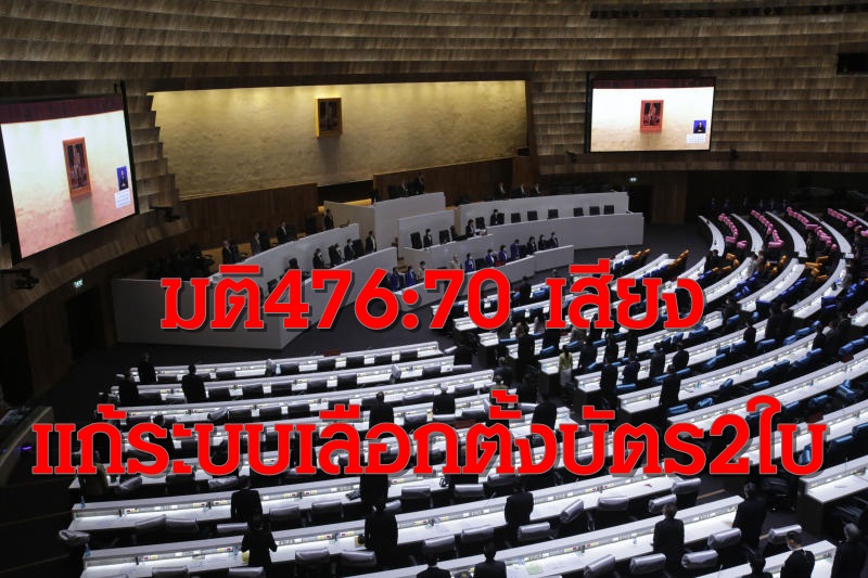 ที่ประชุมรัฐสภาลงมติเห็นชอบ 476ต่อ70เสียง แก้ไขรธน.ระบบเลือกตั้ง2ใบ ส.ส.500 คน แบ่งเป็น ส.ส.เขต 400 คน ส.ส.บัญชีรายชื่อ 100 คน