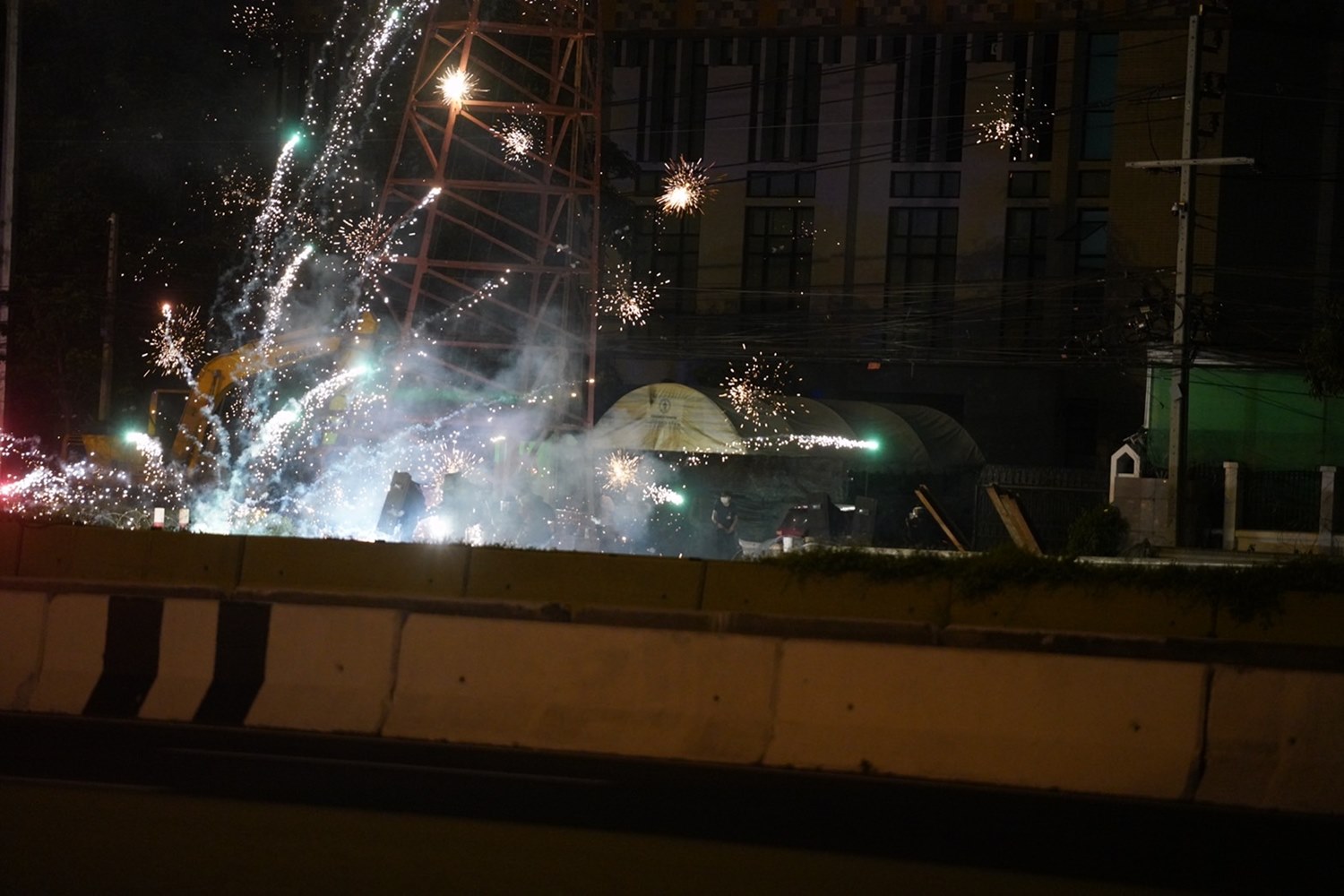 ขณะที่บรรยากาศพื้นที่ดินแดงหลังจากถึงเวลาเคอร์ฟิว ได้มีมวลชนกลุ่มหนึ่งไปรวมตัวกันอยู่บริเวณปากซอยมิตรไมตรี2 ฝั่งตรงข้ามกรมดุริยางค์ทหารบก และได้มีการพยายามยิงลูกแก้ว ปาประทัด และยิงพลุเข้าใส่เจ้าหน้าที่ควบคุมฝูงชนที่อยู่ฝั่งตรงข้าม โดยเจ้าหน้าที่ได้มีการยิงแก๊สน้ำตาเข้ามายังจุดที่มวลชนรวมตัวอยู่เป็นระยะ