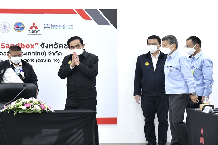 เมื่อวันที่ 16 ก.ย. 64 นายธนกร วังบุญคงชนะ โฆษกประจำสำนักนายกรัฐมนตรี เปิดเผยว่า วันนี้ พล.อ.ประยุทธ์ จันทร์โอชา นายกรัฐมนตรีและรัฐมนตรีว่าการกลาโหม ได้ลงพื้นที่ตรวจติดตามการดำเนินโครงการ Factory Sandbox พร้อมกล่าวมอบนโยบายและตรวจเยี่ยมการฉีดวัคซีนให้กับผู้ประกันตนตามมาตรา 33 ของ บริษัท มิตซูบิชิ มอเตอร์ จำกัด (แหลมฉบัง) ก่อนพบปะกับผู้บริหารและนักลงทุนญี่ปุ่นเพื่อหารือแนวโน้มการลงทุนและการส่งออก