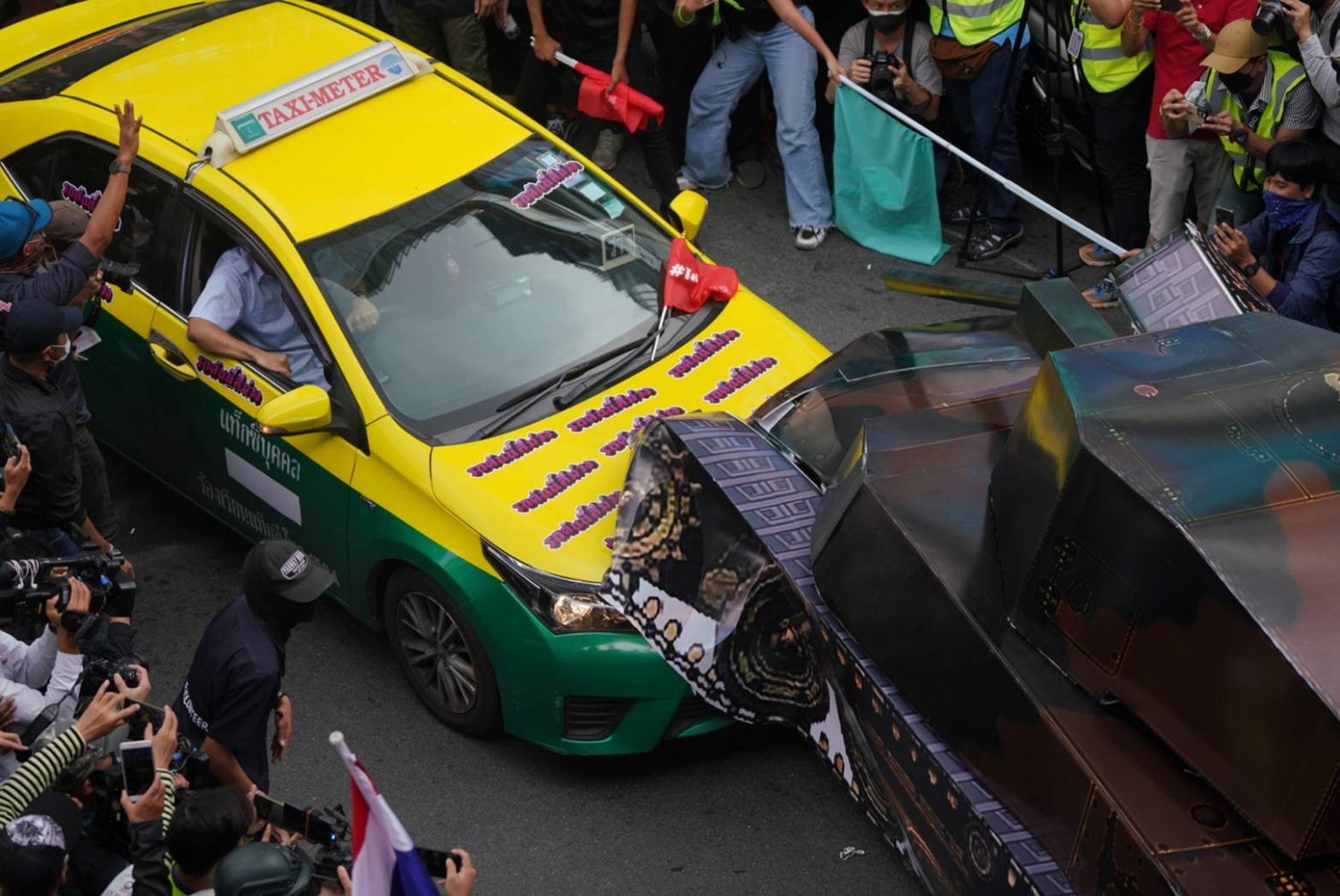 "ณัฐวุฒิ"ขับแท็กซี่ชนรถถัง รำลึก "นวมทอง ไพรวัลย์" ผู้ขับแท็กซี่ชนรถถังช่วงรัฐประหารปี59 คาร์ม็อบเจอฝนถล่มหนักหลังเคลื่อนขบวน