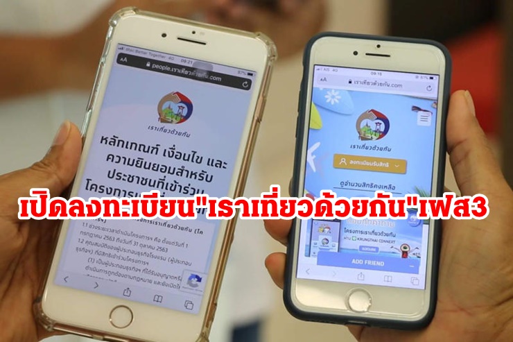 รัฐบาลเชิญชวน ลงทะเบียนโครงการเราเที่ยวด้วยกัน เฟส 3 วันนี้วันแรก รับ 2 ล้านสิทธิ เริ่มเที่ยว 15 ต.ค.