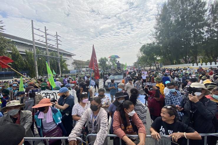 เมื่อวันที่ 22 ก.พ. 65 บริเวณถนนพิษณุโลก แยกพาณิชยการ เชิงสะพานชมัยมรุเชฐ ทำเนียบรัฐบาล มวลชน 3 กลุ่มประกอบด้วย สหพันธ์เกษตรกรแห่งประเทศไทย (สกท.) ,กลุ่มพีมูฟ และเครือข่ายแรงงานเพื่อสิทธิประชาชน ต่างเดินทางมา เพื่อเรียกร้องต่อรัฐบาลในวันที่มีการประชุมคณะรัฐมนตรี (ครม.) วันนี้