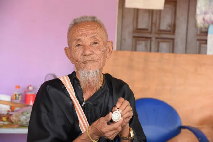 ผู้เฒ่าเผ่าลีซูหยิบเหรียญจากคอออกมา และเล่าว่า “พระเจ้าอยู่หัวให้มาเป็นสัญลักษณ์ของการเป็นลูกบ้าน เป็นประชาชนของท่าน ตอนนั้นไม่ใช่ว่าคนบนดอยไม่มีบัตรเยอะ ตอนนั้นชาวเขาเราไม่รู้ว่าเขตที่เรามาปักหลักปลูกบ้านคือตรงไหน เขาบอกว่าที่นี่เมืองไทยนะ เราก็ไม่รู้ ระหว่างชายแดนก็ไม่รู้ ดังนั้นใครที่มีเหรียญนี้ก็เหมือนเป็นบัตรประชาชน เลขตัวนี้จะอยู่ที่อำเภอ ตอนนั้นได้ 3 เหรียญ ผม ลูกคนโต และเมียผม”