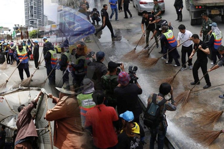 สกลธี ภัททิยกุล รองผู้ว่าฯ กทม. เปิดเผยว่า การจัดระเบียบร้านค้า หาบเร่ แผงลอยที่เกิดขึ้น เป็นผลมาจาก รฟท.ตัดสินใจยินยอมให้ความร่วมมือกับทาง กทม. ช่วยเข้ามาจัดระเบียบ ภายหลังได้รับเรื่องร้องเรียนจากประชาชนเข้ามาเป็นจำนวนมาก ว่าแผงลอยเหล่านี้ตั้งร้านกีดขวางทางเท้า ทิ้งเศษอาหารลงท่อระบายน้ำ ส่งผลกระทบต่อสังคมส่วนรวมเป็นอย่างมาก ดังนั้นจึงกำหนดให้ตั้งแต่วันที่ 29 พ.ค. จะต้องไม่มีร้านค้าหาบเร่ แผงลอย ตั้งร้านกีดขวางรุกล้ำทางเท้าและถนนอีก โดยไม่มีการผ่อนผันหรือยืดระยะเวลาเด็ดขาด