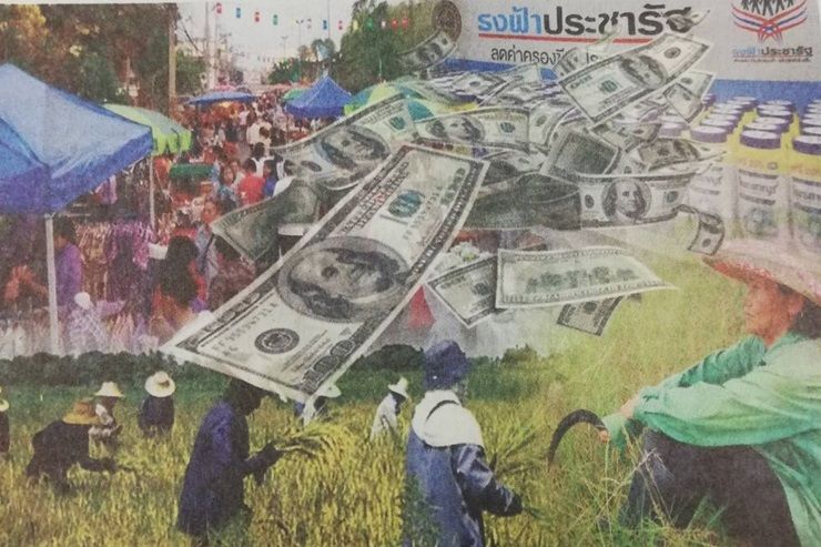 รูปแบบการซื้อใจฐานเสียงคนจนยุค "บิ๊กตู่" ในปีแรกใช้นโยบาย "ประชารัฐ" ผนึก 3 ฝ่าย ภาครัฐ ภาคเอกชน และภาคประชาสังคม ดึงมหาเศรษฐีไทยอันดับต้นๆ เจ้าของบริษัทยักษ์ใหญ่มาช่วยกันลงขันตั้ง "บริษัท ประชารัฐ รักสามัคคี" จำนวน 76 จังหวัด ระดมงบประมาณและโครงการประชารัฐ จัดโครงการเอาใจประชาชน อาทิ "โครงการสินเชื่อบ้านประชารัฐ" วงเงิน 4 หมื่นล้านบาท "โครงการธงฟ้าประชารัฐ" กระทรวงพาณิชย์ จัดคาราวานขายของถูก งบประมาณกว่าหมื่นล้านบาท