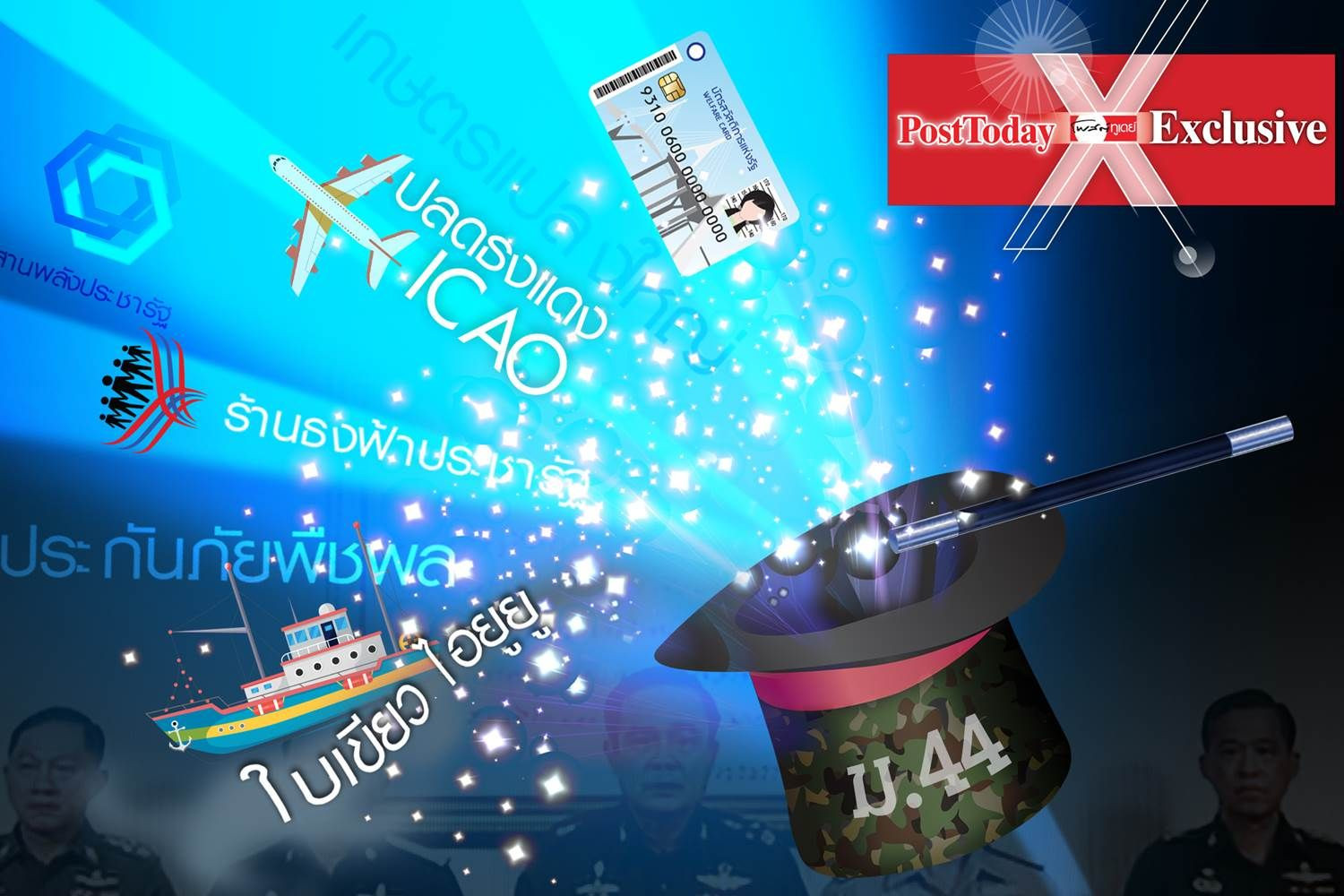 ท้ั้งหมดทั้งปวง อย่าลืมว่า ล้วนเกิดจากอภินิหารแห่งมาตรา 44 จึงทำให้คสช.ทำตามสัญญาโดยใช้เวลาอีกไม่นาน ไม่ต้องผ่านกระบวนการตามขั้นตอนราชการอันยุบยับ แบบว่า ใช้ทางลัดบริหารประเทศรวดเร็วเห็นผลกว่า