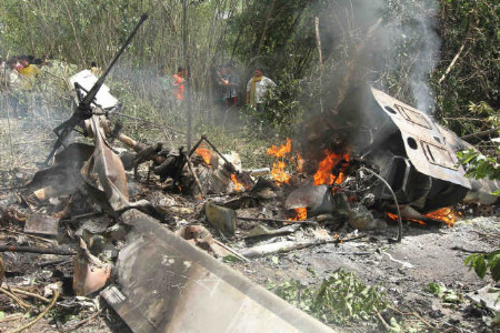 เมื่อวันที่ 24 ก.ค.เฮลิคอปเตอร์แบบเบลล์ 212 ของกองทัพบกประสบอุบัติเหตุเครื่องขัดข้องตกในป่าเขต บ้านต้นเกตุ ต.แก่งกระจาน อ.แก่งกระจาน จ.เพชรบุรี โดยตัวเครื่องเกิดไฟลุกท่วมเป็นเหตุให้มีผู้เสียชีวิต 3 ราย บาดเจ็บ 1 ราย // พัฒนพงษ์ หิรัญอาจ