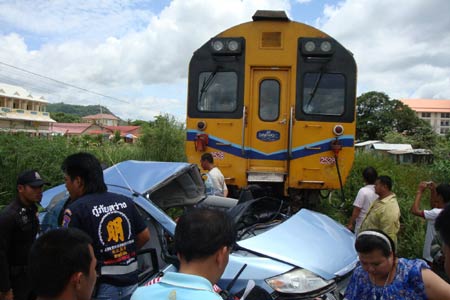 2 แม่ลูกซิ่งเก๋งรถไฟชนเจ็บสาหัส