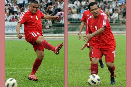 แกนนำเสื้อแดง-สส.เพื่อไทยเตะบอลกระชับมิตรกับฮุนเซน-สส.เขมรสุดชื่นมื่น ฮุนเซนยิง 4 ประตูพาทีมชนะ10-7