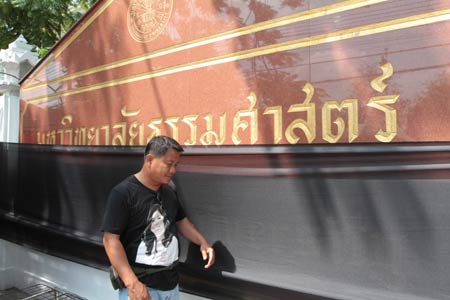 เมื่อเวลา 11.00 น. ที่ลานประติมากรรมกำแพงประวัติศาสตร์ มหาวิทยาลัยธรรมศาสตร์ กลุ่มศิษย์เก่ามธ.จำนวนกว่า 50 คน อาทิ นายวีระกานต์ มุสิกพงษ์ แกนนำคนเสื้อแดง นายมณฑล ชาติสุวรรณ ฉายาปลัดแรมโบ้ ได้ร่วมกันแถลงข่าวเรียกร้องให้ตรวจสอบการทำหน้าที่ของนายสมคิด เลิศไพฑูรย์ อธิการบดีมธ.