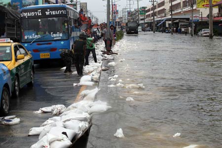 ที่บริเวณด้านหลังหมู่บ้านรัตนโกสินทร์ 200 ปี ต.ประชาธิปัตย์ อ.ธัญบุรี จ.ปทุมธานี ได้มีกลุ่มชาวบ้านออกมาร่วมตัวกันจำนวนเกือบ 200 คน หลังจากที่มีชาวบ้านที่พักอาศัยอยู่นอกหมู่บ้านประมาณ 40 หลังคาเรือนและได้รับผลกระทบจากน้ำในคลองเปรมประชากร ที่เออท่วมบ้านทำให้ได้รับความเดือดร้อนจึงออกมาแอบดึงกระสอบทรายที่กั้นไม่ให้น้ำไหลเข้ามาในหมู่บ้านรัตน์โกสินทร์ 200 ปี เพื่อที่จะให้น้ำในบ้านลดลง หลังทราบข่าวชาวบ้านภายในหมู่บ้านเกรงว่าจะเข้ามาท่วมจึงรวมตัวกันเพื่อป้องกันจนเกือบมีการประทะกัน โดยมีเจ้าหน้าที่ตำรวจ จาก สภ.ประตุน้ำจุฬาลงกรณ์ รีบเข้ามาควบคุมสถานการณ์