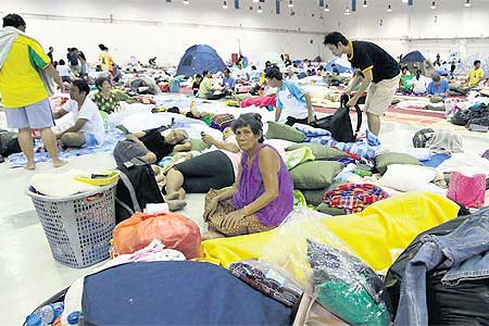 ผู้อพยพหนีภัยน้ำท่วมที่เข้ามาพักอาศัยหลับนอนอยู่ในศูนย์อพยพหลายแห่งที่ทางราชการจัดให้