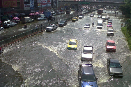 องค์การขนส่งมวลชนกรุงเทพฯ (ขสมก.)ประกาศงดเดินรถตั้งแต่ห้าแยกลาดพร้าวไปจนถึงโชคชัย4 แต่รถร่วมบริการขสมก.เช่นรถเมล์สาย8ยังเปิดวิ่งให้บริการแต่ปากซิยภาวนาเท่านั้น เนื่องจากมีปริมาณน้ำเพิ่มสูงขึ้นอย่างต่อเนื่อง ส่วนรถไฟฟ้าบีทีเอส และเอ็มอาร์ทียังเปิดให้บริการตามปกติ