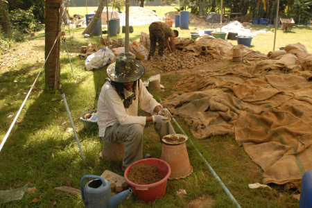 ทั้งนี้ สำหรับวัสดุที่เป็นวัตถุดิบซึ่งจะมีผู้บริจาคมาเพื่อช่วยเหลือผู้ประสบภัยน้ำท่วมซึ่งจะมีส่วนประกอบหลักคือ รำหยาบ รำระเอียด ดินดี กากน้ำตาล และ จุลินทรีย์ โดยมูลนิธิข้าวขวัญใช้จุลินทรีย์จากดินป่าห้วยขาแข้งส่วนประกอบของจุลินทรีย์ที่ปั้นบอล ซึ่งมีทั้งกากน้ำตาลและรำข้าวนั้น ใช้เพื่อเป็นอาหารของจุลินทรีย์ให้ขยายจำนวนมากขึ้น เมื่อปั้นก้อนเสร็จแล้วจะมีการบ่มหมักเอาไว้ เพื่อให้จุลินทรีย์ย่อยสลายกากน้ำตาลและรำข้าว เพื่อเพิ่มปริมาณ จุลินทรีย์เป็นเวลาอย่างน้อย 7-10 วัน ระหว่างนั้นจะเกิดความร้อนจากการหมัก เช่นเดียวกับการทำปุ๋ยหมักนั่นเอง
