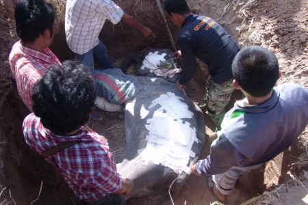 นายด่วน งามพิลา อายุ 42 ปี เจ้าของพลายร็อกกี้ ได้นำช้างขึ้นรถบรรทุกหกล้อเดินทาง กลับมาฝังที่บ้านม่วงราษฎรเจริญ ต.กระเบื้องอ.ชุมพลบุรี จ.สุรินทร์