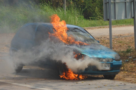ระทึก!ไฟลัดวงจรไหม้เก๋งวอด