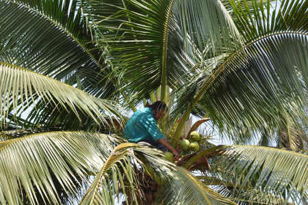 ทึ่ง!ยายวัย74ปีปีนเก็บมะพร้าวขาย