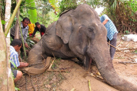 เมื่อวันที่ 3 มี.ค. นายสัตวแพทย์พรภิรมย์ ฟุ้งตระกูล ปศุสัตว์อำเภอร่อนพิบูลย์ จ.นครศรีธรรมราช ในฐานะสัตวแพทย์ผู้ดูและช้างภาคใต้ของมูลนิธิเพื่อนช้าง ได้รับแจ้งจากนายสมชัย หยูทองคำ อายุ 54 ปี อยู่ ม.1 ต.ทอนหงส์ อ.พรหมคีรี จ.นครศรีธรรมราช ให้เข้าไปช่วยรักษาช้างเป็นลมที่ชายป่าในหมู่บ้าน รับแจ้งแล้วจึงรีบเตรียมอุปกรณ์พร้อมด้วยเวชภัณฑ์ในการรักษาช้างก่อนจะรีบเดินทางไปยังที่เกิดเหตุทันที