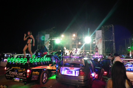 นักเต้นโคโยตี้ กำลังวาดลวดลายบนรถกระบะที่ตกแต่งด้วยเครื่องเสียงเปิดเพลงในจังหวะเร้าใจอยู่ในงานไม้ล้อมไม้ใหญ่และพืชสมุนไพรบ้านดงบัง ต.ดงขี้เหล็ก อ.เมือง จ.ปราจีนบุรี เมื่อค่ำวานนี้ (19มี.ค.)เป็นที่ตื่นตาแก่ผู้พบเห็น ทั้งนี้ทราบว่าโชว์ดังกล่าวเป็นของร้านประดับยนต์และจำหน่ายเครื่องเสียงแห่งหนึ่งที่ต้องการจัดโฆษณาให้แหวกแนวและเรียกความสนใจจากผู้ที่มาเที่ยวงาน