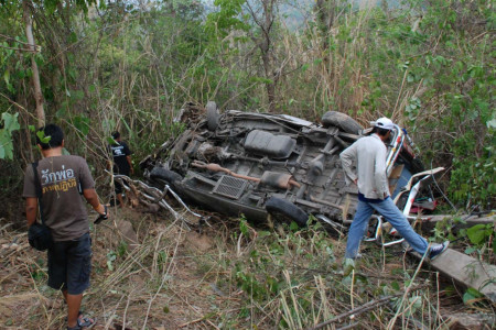 รถตู้ผ้าป่าแหกโค้งตกเขาดับ2