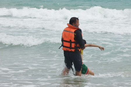 คลื่นยักษ์ซัดกระหน่ำหาดแม่รำพึงกลืน 2 พ่อลูกขณะลงเล่นน้ำทะเล ส่วนหลานสาววัย 11 ขวบรอดตายหวุดหวิด