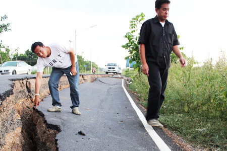 ชาวคลองหลวงผวาถนนทรุดยาว2เมตร