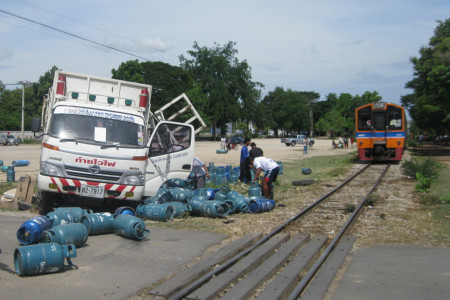 ระทึก!รถไฟเมืองกาญจน์ชนรถบรรทุกแก๊ส