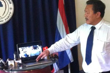 เมื่อเวลา 13.00 น. ที่สวนชูวิทย์ นายชูวิทย์ กมลวิศิษฏ์ หัวหน้าพรรครักประเทศไทย แถลงข่าวต่อสื่อมวลชนพร้อม นำคลิปที่อ้างว่าเป็นบ่อนกิ่งเพชร มาแสดง โดยภายในคลิปปรากฏภาพ นักพนันกำลังเล่นบาคาร่ากันอย่างเปิดเผยไม่เกรงกลัวกฏหมาย