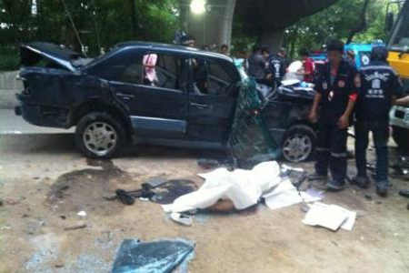 รถเบนซ์ซิ่งเสียหลักชนขอบทางต่างระดับรัชวิภา ก่อนตกลงมาพื้นข้างล่างลูกสาวดารารุ่นใหญ่ โกวิท วัฒนกุล น้องมายด์ เสียชีวิต