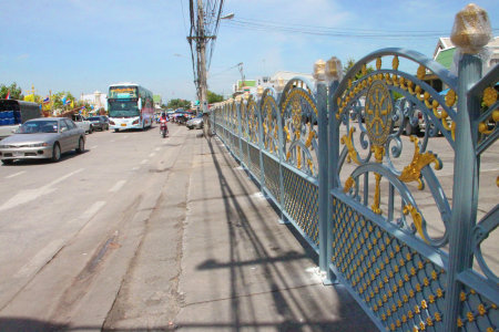 แนวกำแพงที่เพิ่งถูกนำมาติดตั้งใหม่เพียงชั่วข้ามคืนนี้ เป็นกำแพงรั้วโลหะทาสีเทาสลับสีเหลืองทอง สูงประมาณ 170 ซม. ติดตั้งไว้อย่างแน่นหนาตั้งแต่แนวหัวมุมกำแพงด้านหน้าตลาดสดชุมชนโสธร ยาวมาจนเกือบถึงปากทางเข้าอาคารจอดรถ 5 ชั้น ระยะทางประมาณเกือบ 100 เมตร