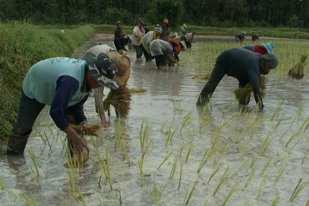 ฝนตกหนักติดต่อกัน3 วันส่งผลให้นาข้าวในบางพื้นที่จ.สุรินทร์ มีน้ำหล่อเลี้ยงต้นข้าวพ้นวิกฤตยืนต้นตาย โดยเฉพาะนาข้าวในพื้นที่ บ้านตาดทอง ต.เมืองแก อ.ท่าตูม พบว่ามีปริมาณน้ำฝนกักขังในผืนนา ทำให้เป็นโอกาสทองของชาวนาในพื้นที่แห่ถอนกล้าปักดำนากันอย่างคึกคัก โดยจ้างวานญาติพี่น้องและเพื่อนบ้านเกือบ 40 คน เร่งถอนกล้าข้าวและทำการรีบปักดำนานาทันที หวังให้ทันออกผลผลิตทันเก็บเกี่ยว หลังจากรอคอยน้ำฝนมานานเกือบ 3 เดือน
